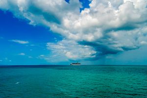 A cruise ship moves slowly across the turquoise waters of the Andaman Sea as a towering wall of monsoon clouds builds above the horizon. The contrast between calm ocean and approaching storm reflects the dramatic weather shifts of the tropics. Captured along the coast of Thailand, this frame highlights the scale and mood of nature in transition — open water, cinematic light, and an atmosphere that feels both peaceful and powerful at the same time.